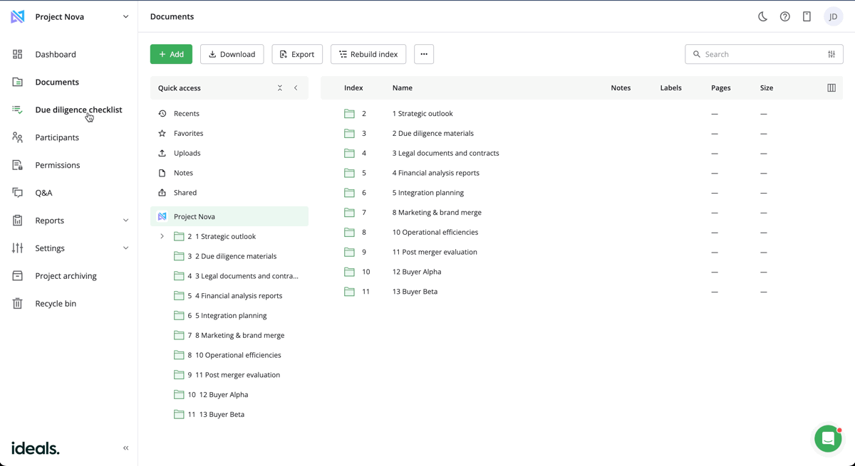 Efficient due diligence is the backbone of successful mergers and acquisitions, but traditional methods often fall short. Excel files, version confusion, and redundant updates can all bog down workflows and create unnecessary frustrations. The new Due diligence checklist helps you simplify collaboration and manage critical information more effectively.