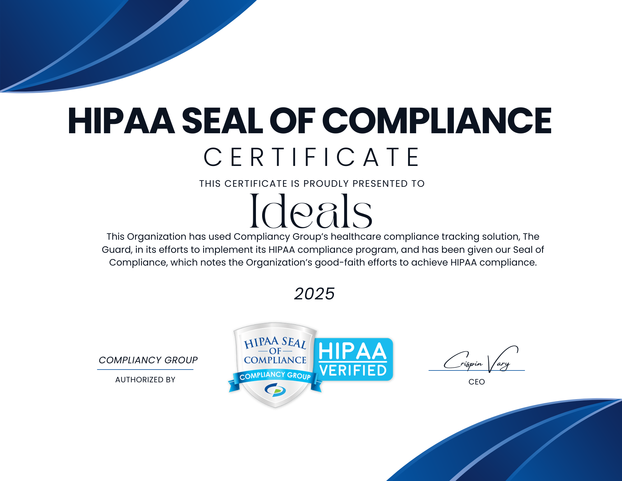Ideals compliance with HIPAA has been verified by a 3rd party, our data centers are compliant with U.S. Health Insurance Portability and Accountability Act of 1996 (HIPAA).
